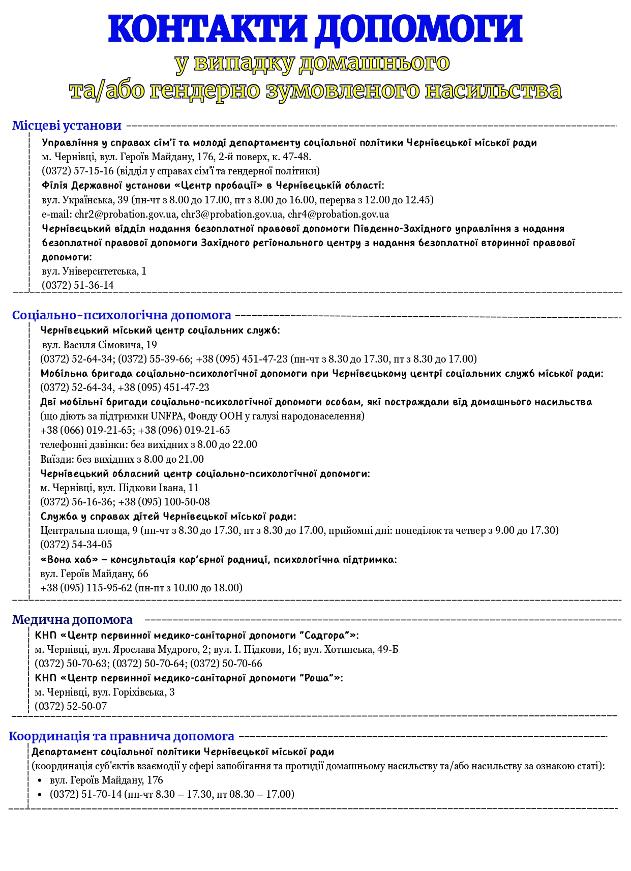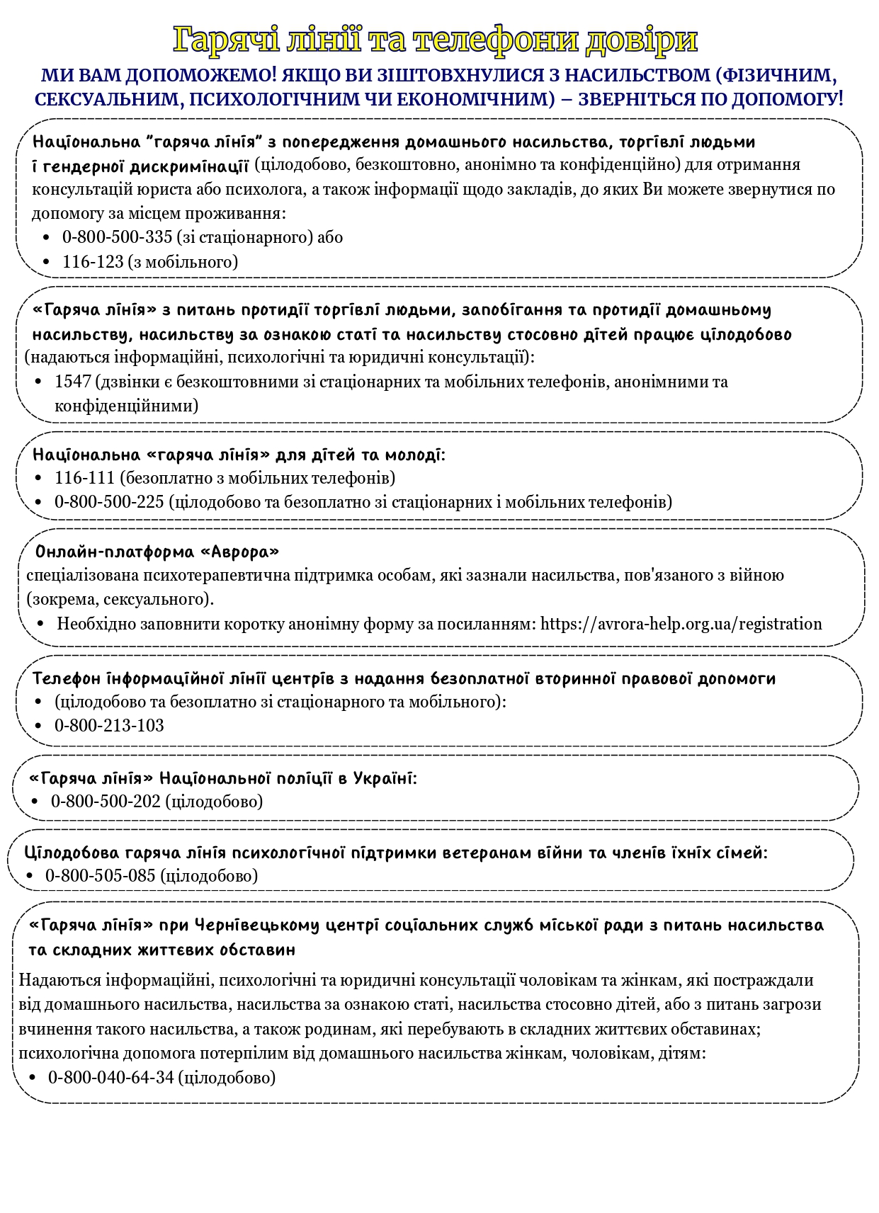 Контакти допомоги у випадку домашнього або гендерно зумовленого насильства