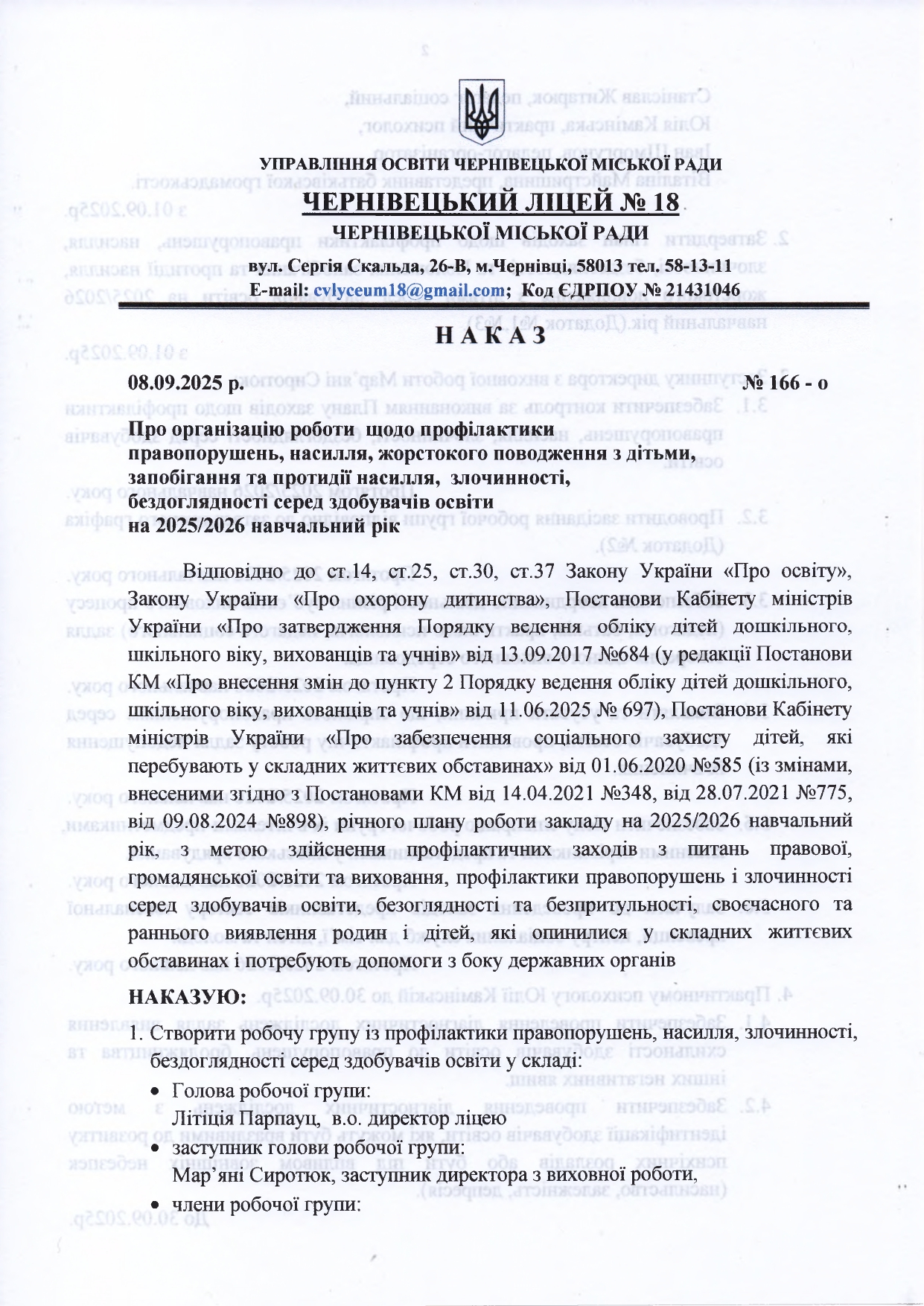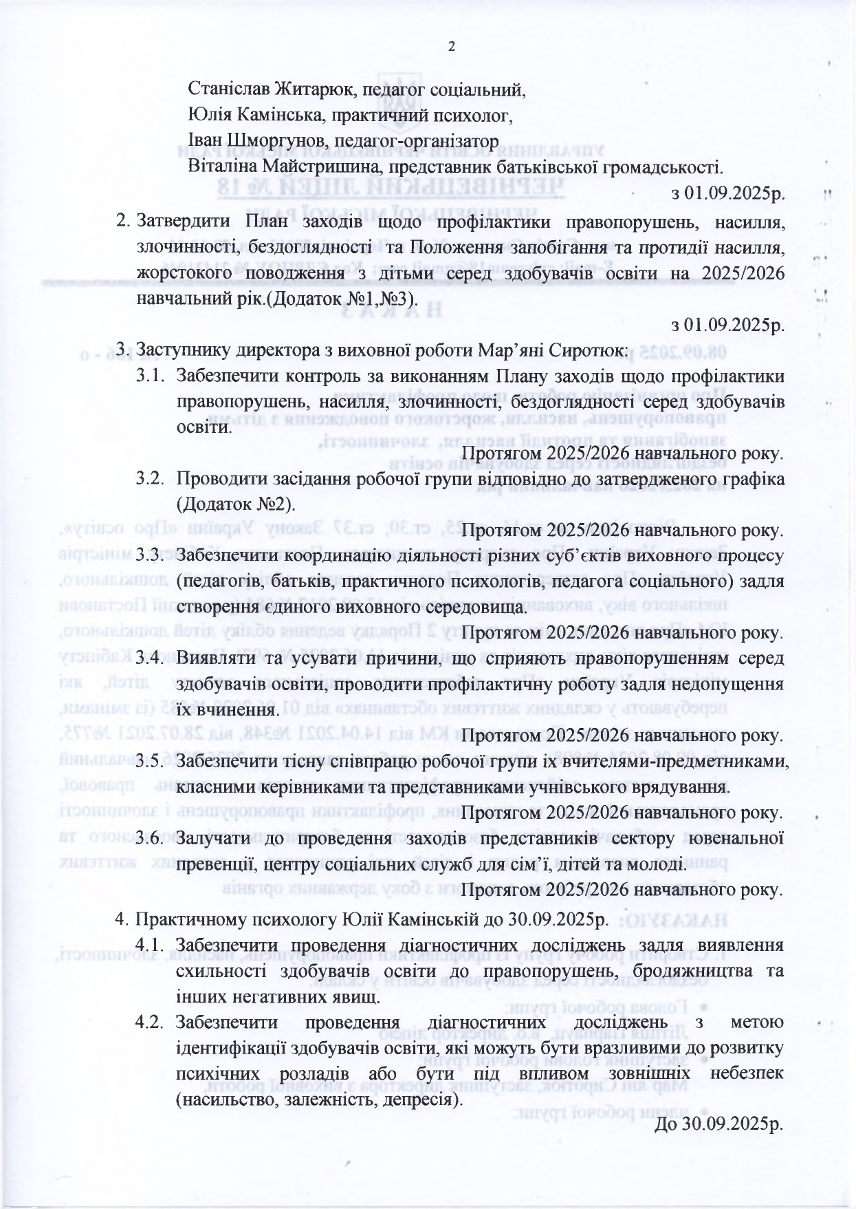 Про організацію роботи щодо профілактики правопорушень, насилля